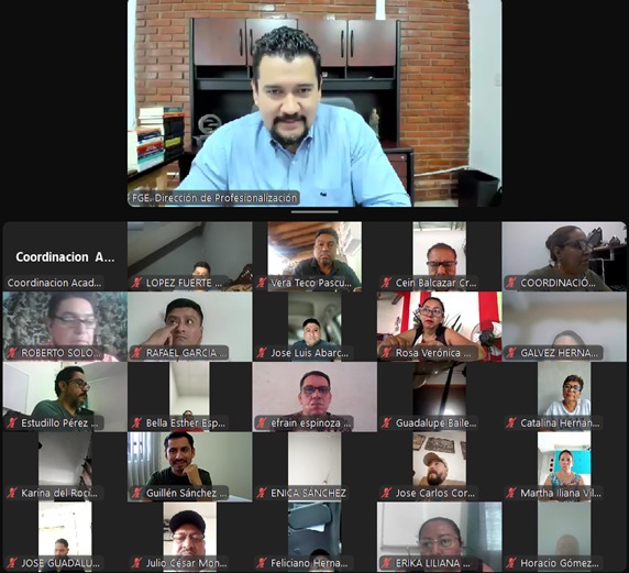 La Fiscalía General del Estado, a través de la Dirección de Profesionalización, diseñó e implementó el curso Derechos a la legalidad y seguridad jurídica; acceso a la justicia, en su modalidad de procuración; y reparación integral del daño en el procedimiento y/o proceso penal, dirigida a personal adscrito a la Fiscalía de Distrito Centro y otros órganos sustantivos
