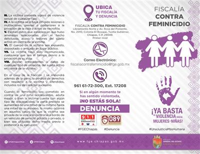 Propósito: Dar a conocer que la violencia hacia las mujeres y niñas es un delito, y que el ejercicio de esta violencia puede culminar en Feminicidio. Se fomenta la cultura de la denuncia.