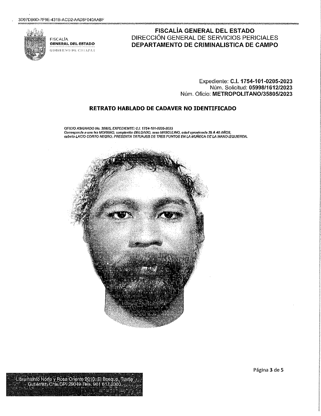 Consulta a la Base de Datos de Occisos No Identificados y/o sin reclamar del Servicio Médico Forense