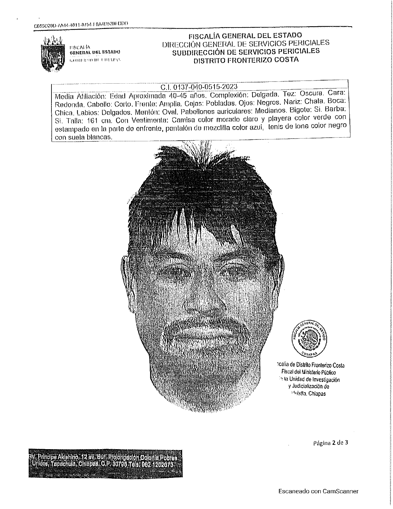 ESTA PERSONA SE ENCUENTRA NO IDENTIFICADA Y/O SIN RECLAMAR, ATENDIDA POR EL SERVICIO MEDICO FORENSE DEL ESTADO