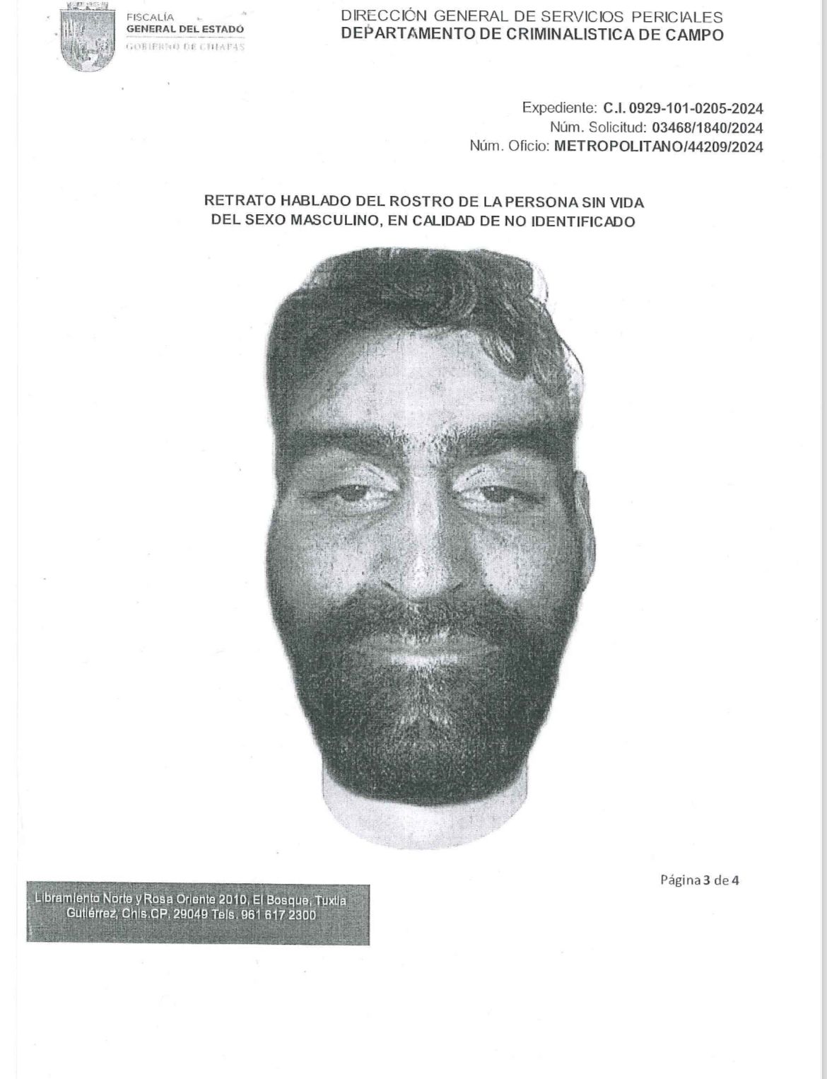 ESTA PERSONA SE ENCUENTRA NO IDENTIFICADA Y/O SIN RECLAMAR, ATENDIDA POR EL SERVICIO MEDICO FORENSE DEL ESTADO