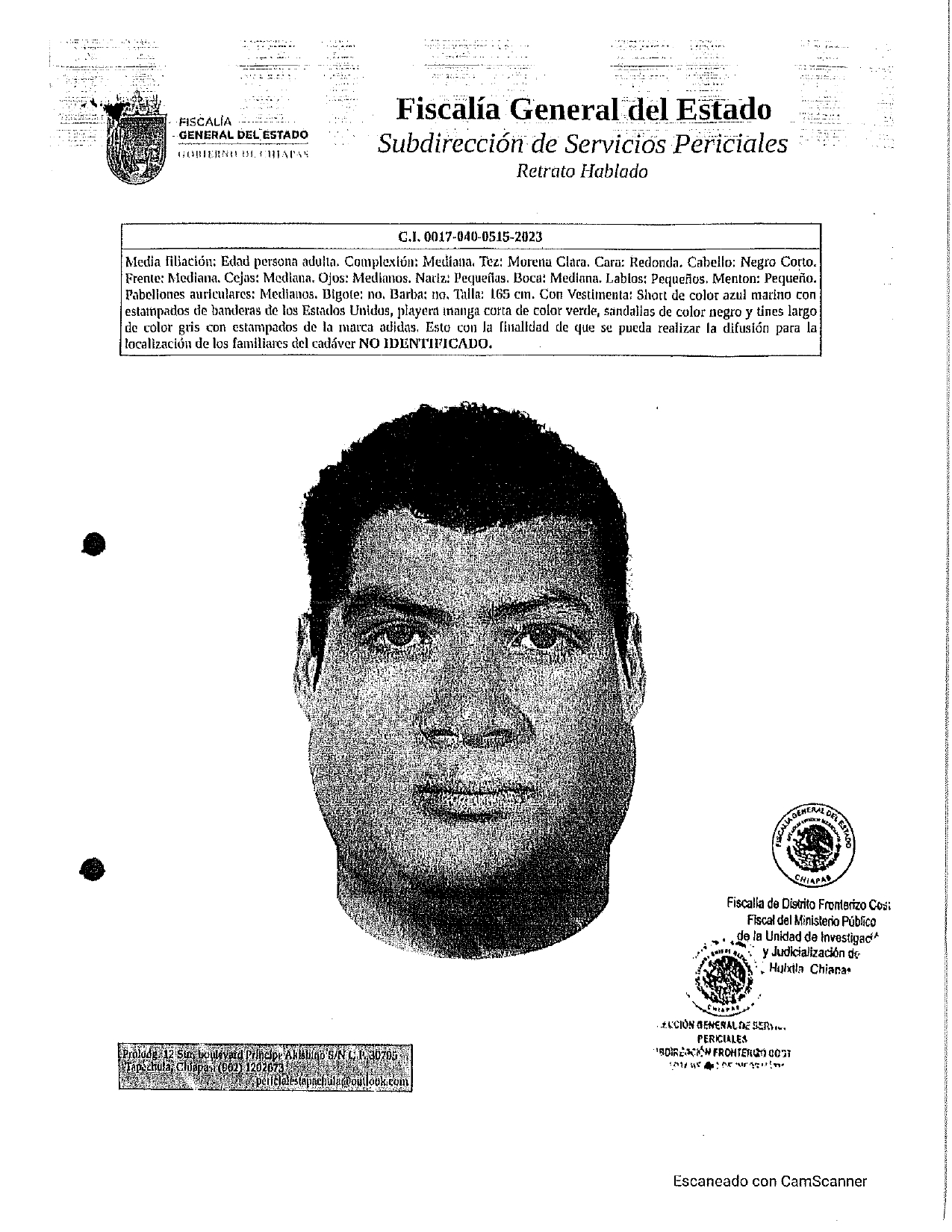 ESTA PERSONA SE ENCUENTRA NO IDENTIFICADA Y/O SIN RECLAMAR, ATENDIDA POR EL SERVICIO MEDICO FORENSE DEL ESTADO
