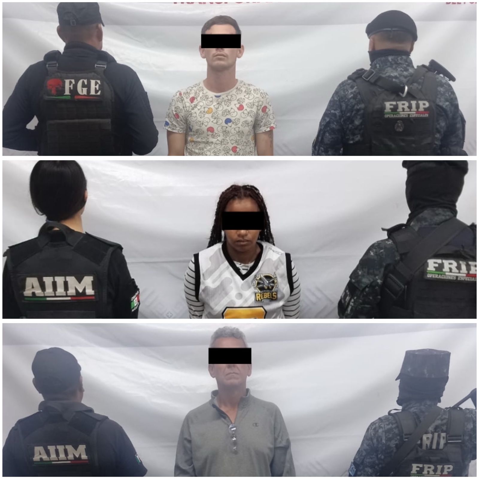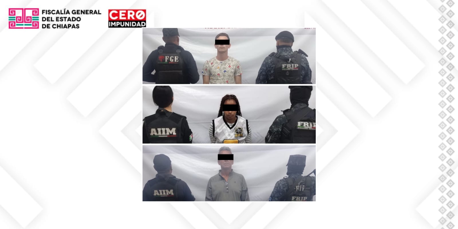 La Fiscalía General del Estado y la Secretaría de Seguridad del Pueblo cumplimentaron órdenes de aprehensión en contra de Jonnayker “N”, Edinson “N” y Joelvis “N”, los tres de origen venezolano, como presuntos responsables de los delitos de trata de personas, en la modalidad de explotación