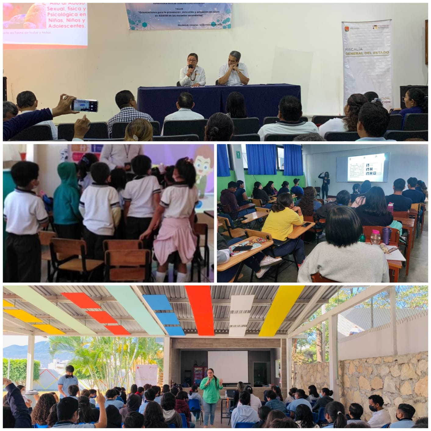 Tuxtla Gutiérrez, Chiapas; 20 de Febrero 2023.-La Fiscalía General del Estado (FGE) a través de la Coordinación de Prevención y Participación Ciudadana y la Fiscalía de Distrito Selva, en colaboración con la Secretaría de Educación del Estado, llevaron a cabo la Jornada de Prevención dirigida a las y los docentes del nivel secundaria, en los municipios de Palenque y Salto de Agua