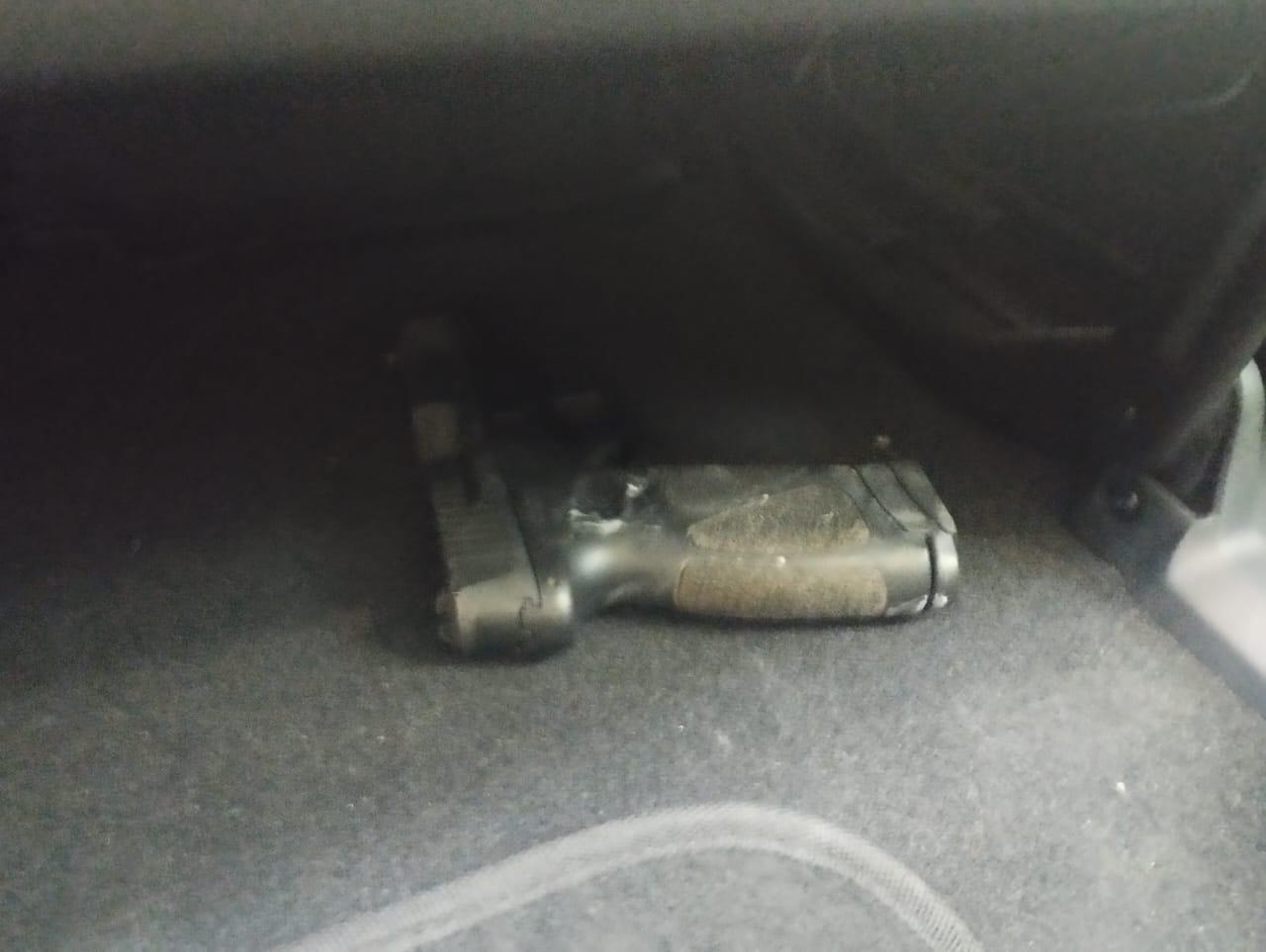 vehículo y, en su interior, un arma de fuego calibre 9 mm que por el tipo de