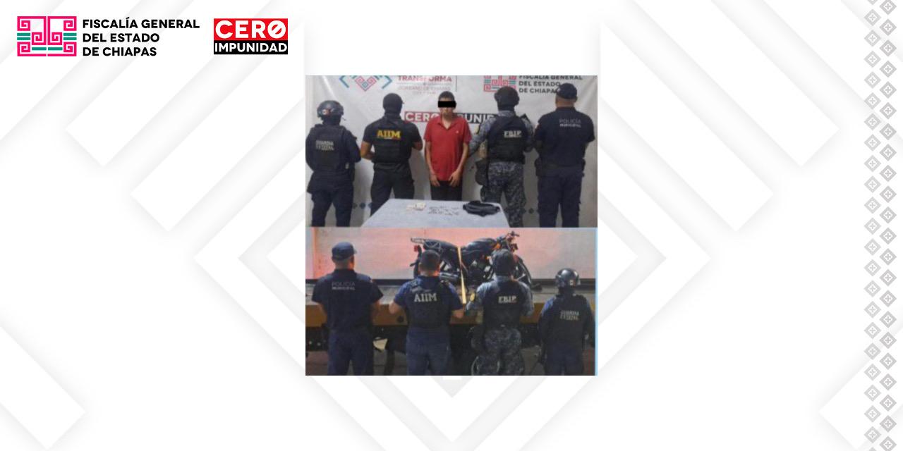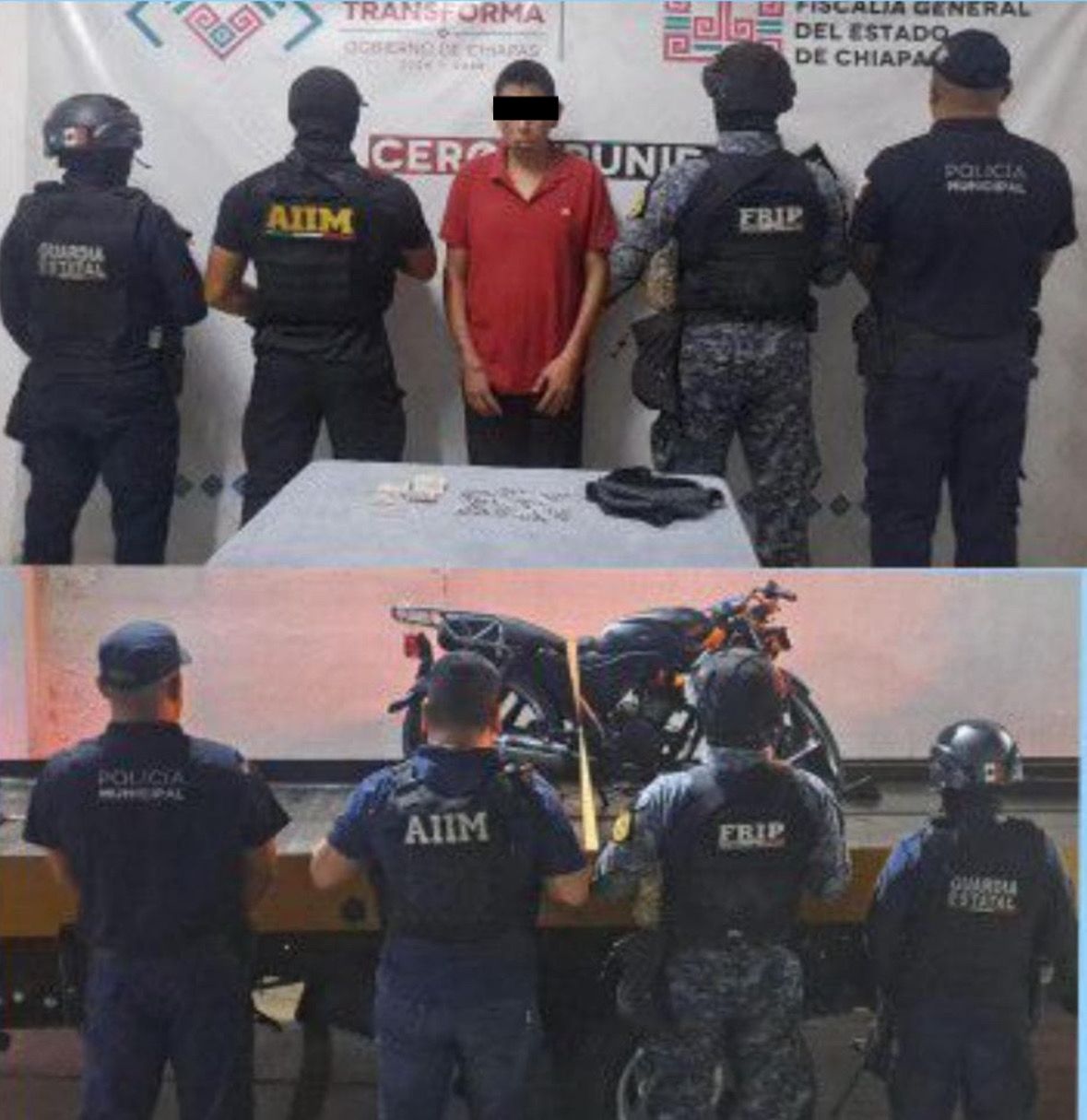 La Fiscalía General del Estado, la Secretaría de Seguridad del Pueblo y la Policía Municipal detuvieron en flagrancia de Alan “N”, alias “El Padrino”, como presunto responsable del delito contra la salud, cometido en agravio de la sociedad, por hechos ocurridos en la colonia San Miguel, del municipio de Villaflores.
