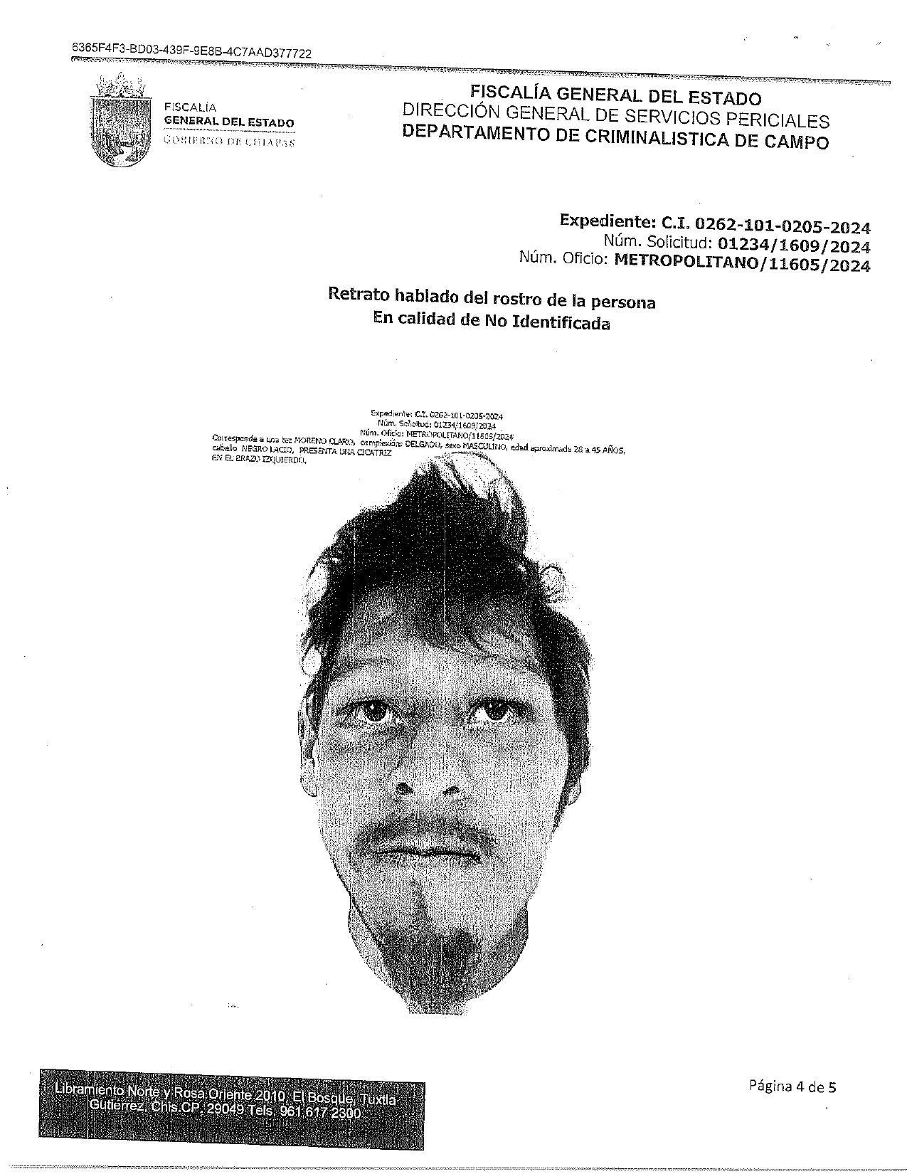 ESTA PERSONA SE ENCUENTRA NO IDENTIFICADA Y/O SIN RECLAMAR, ATENDIDA POR EL SERVICIO MEDICO FORENSE DEL ESTADO
